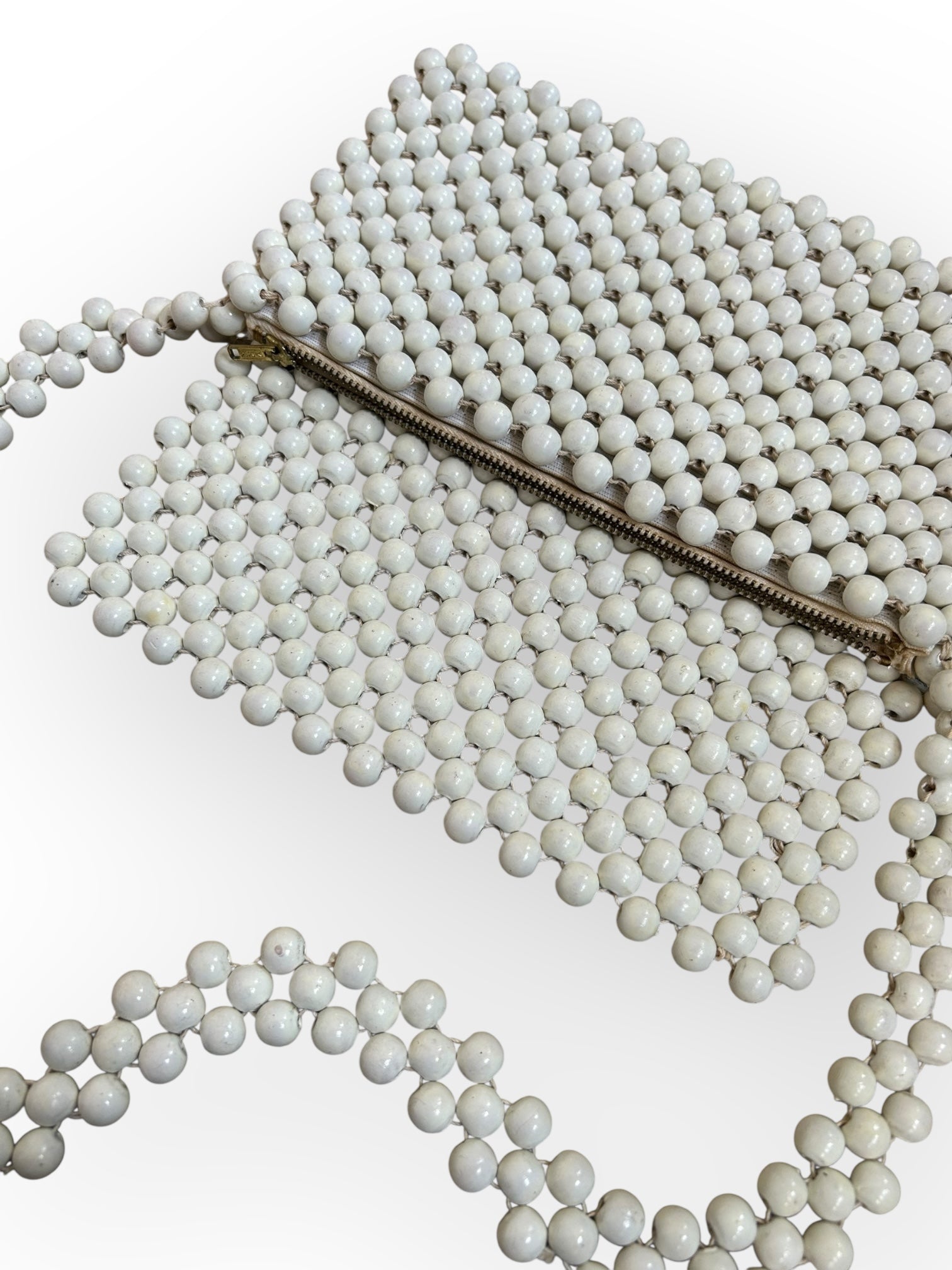 1960s Japanese white beaded shoulder purse. Shows minor signs of wear. Clean interior.