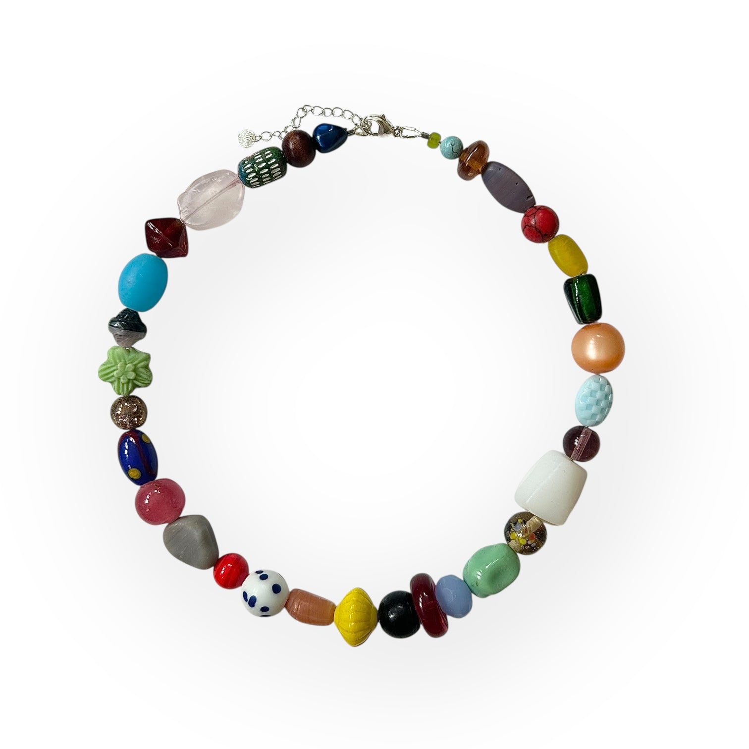 Mixed mostly glass vintage beads, including rare ones. Each necklace is one-of-a-kind.