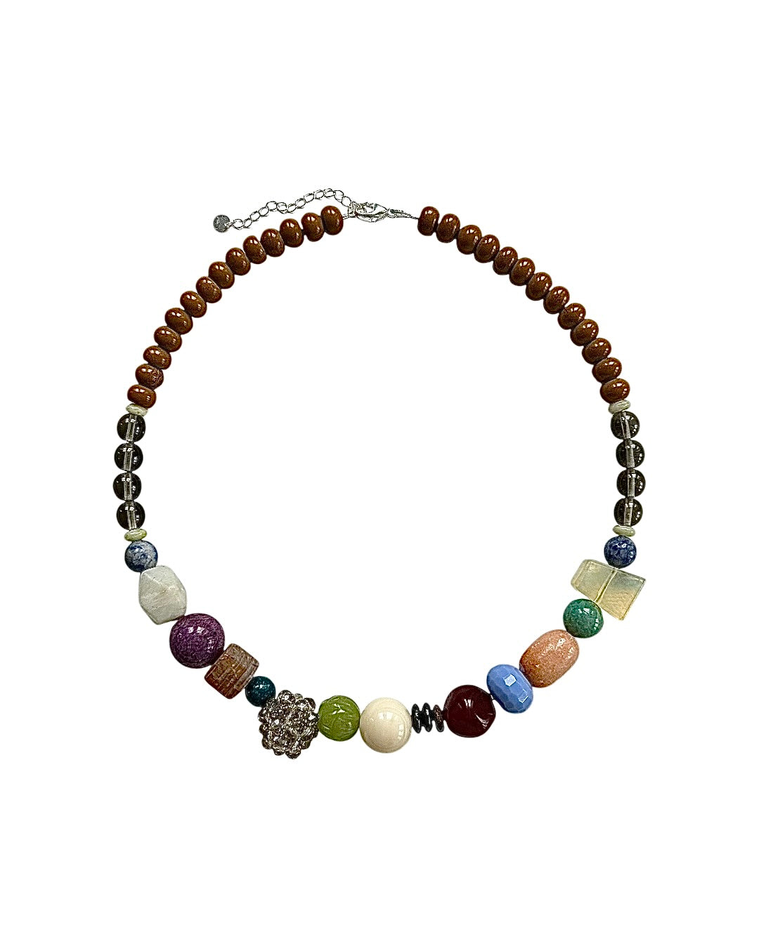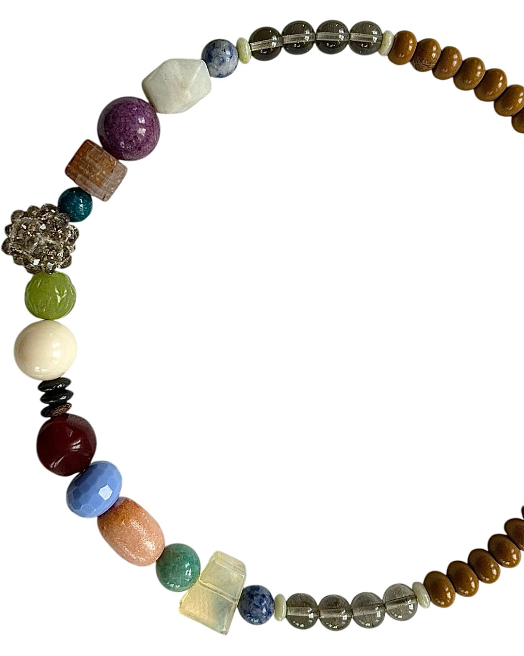 Jasper, jade variations, pineapple quartz, sodalite, amazonite, and mixed vintage glass.