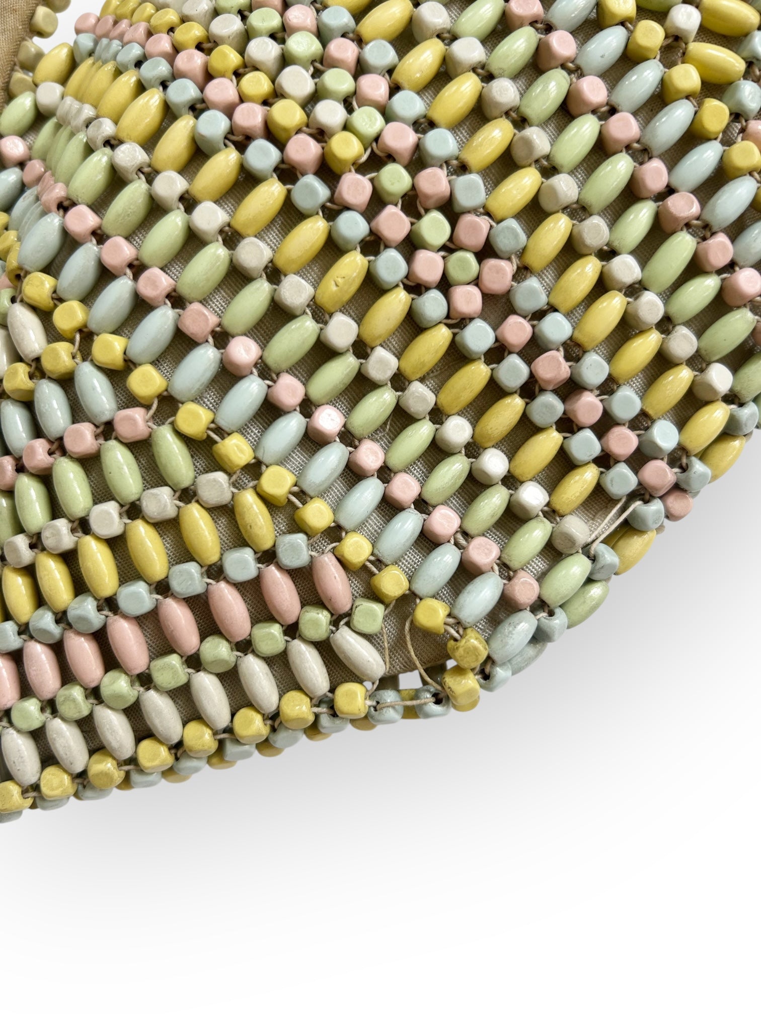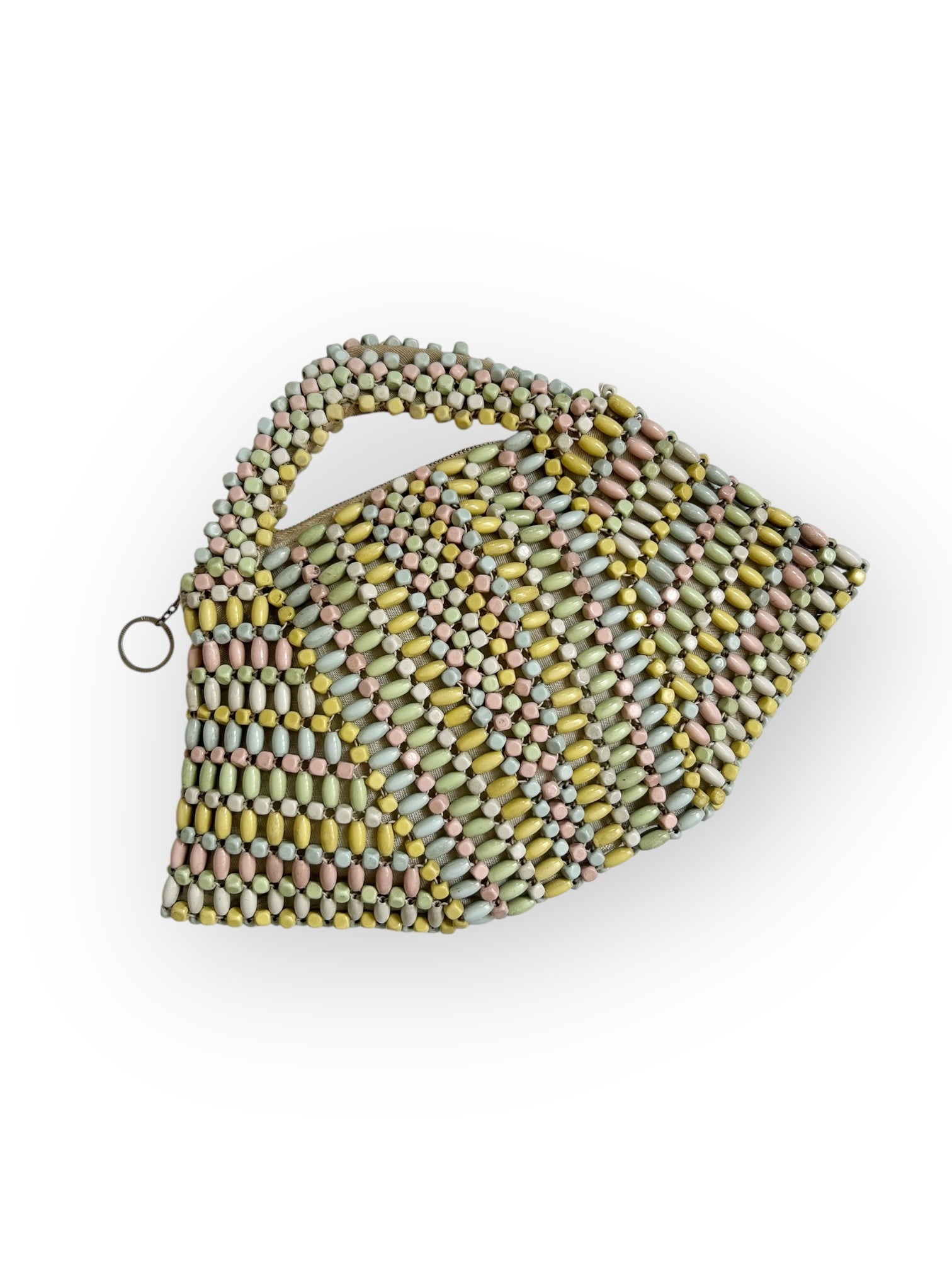 1940s Czech beaded mini purse. Pastel palette. Missing one bead.