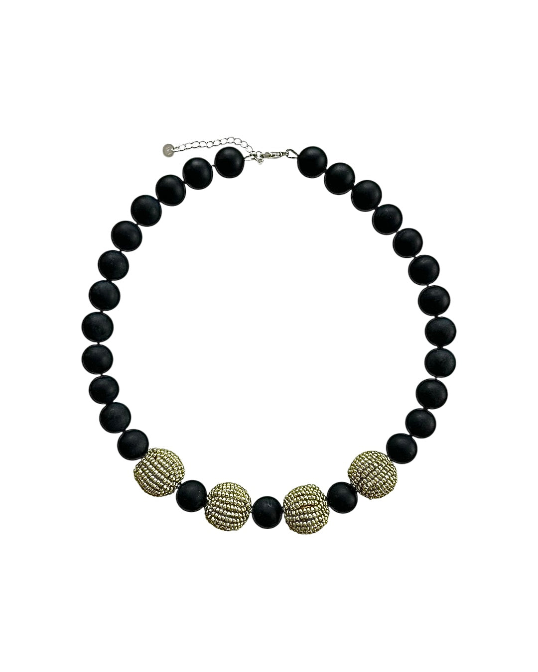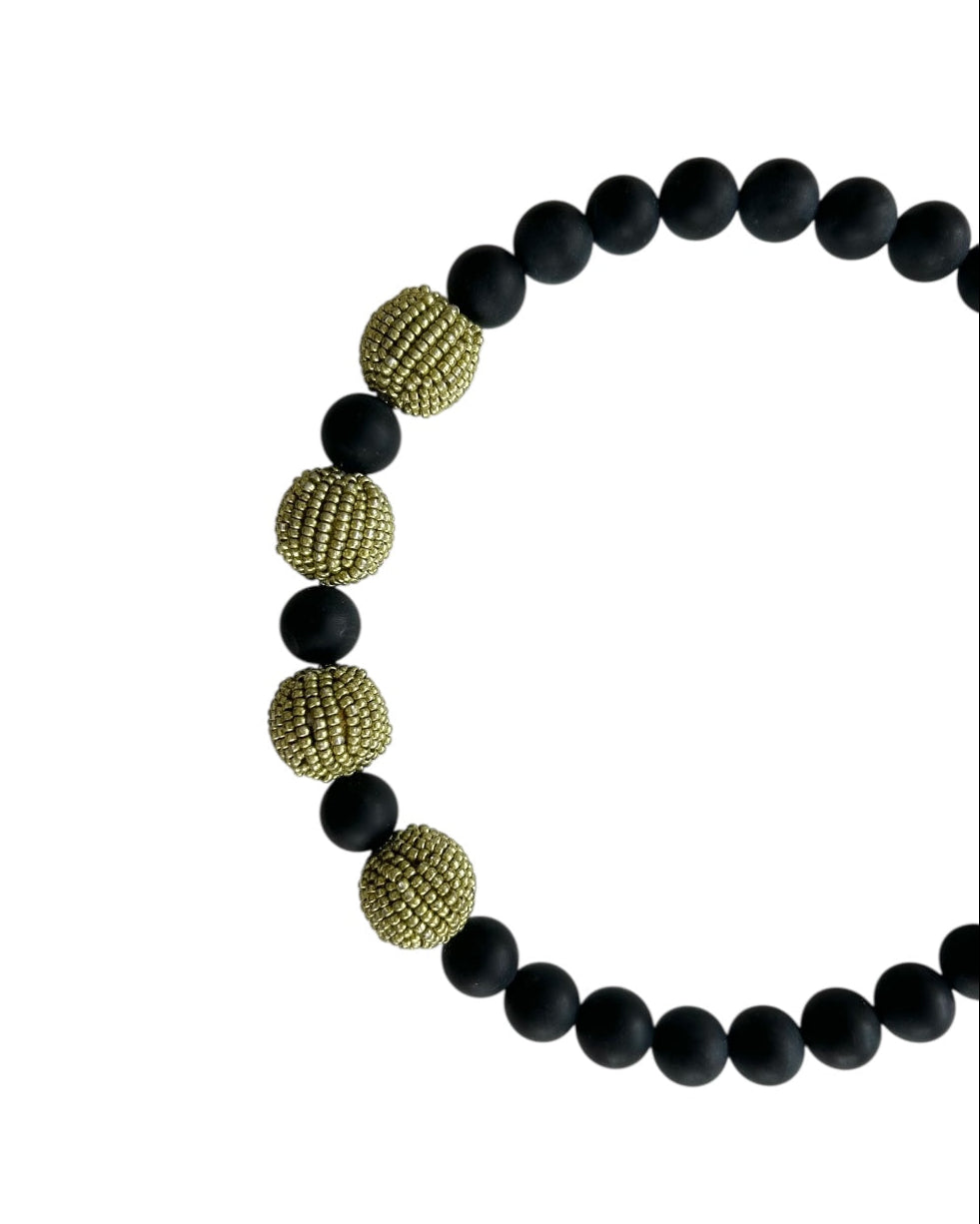 Black onyx and vintage gold seed bead balls. One of a kind. 16-18"