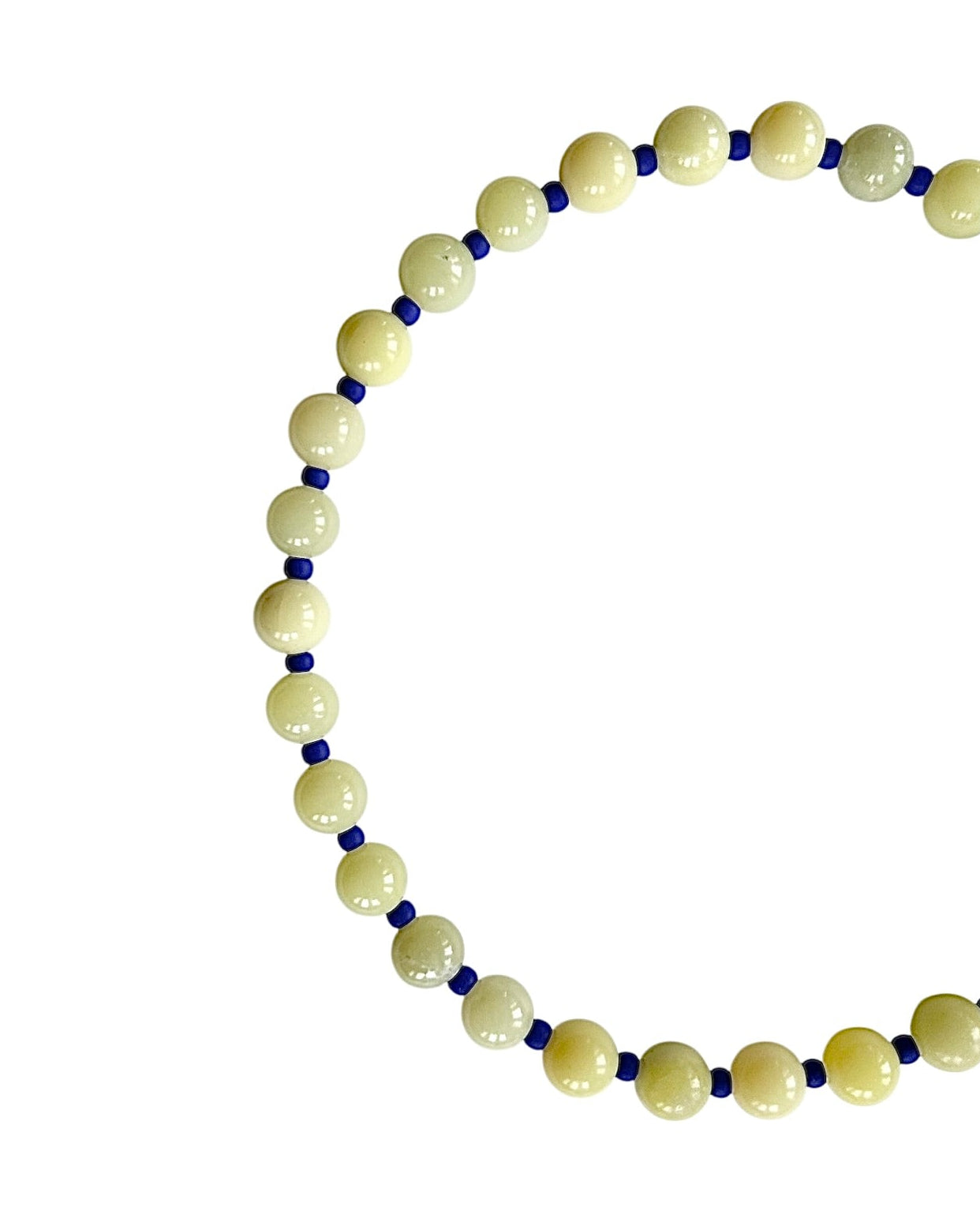 Lemon jade and vintage cobalt blue whiteheart glass beads.