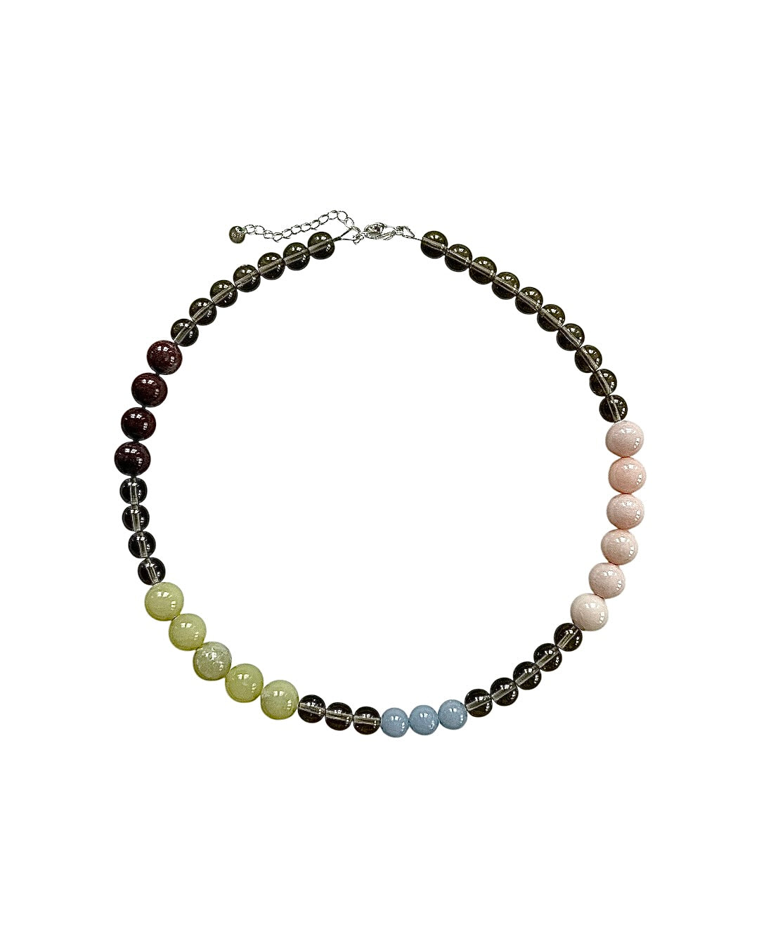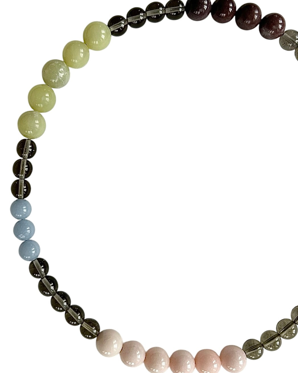 Vintage glass, purple jade, olive jade, angelite, pink opal. One of a kind.