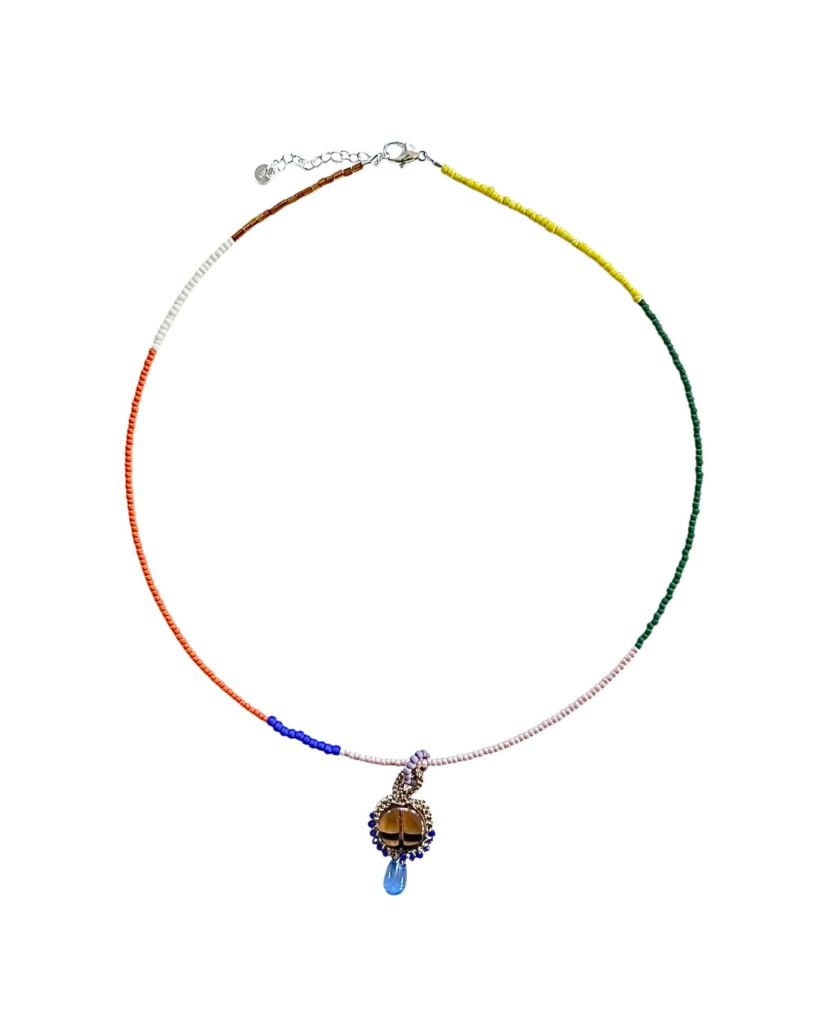 Mixed colorful seed beads with crocheted bead medals handmade by French artist Delphine Cheuret. Each piece is one-of-a-kind and so special.