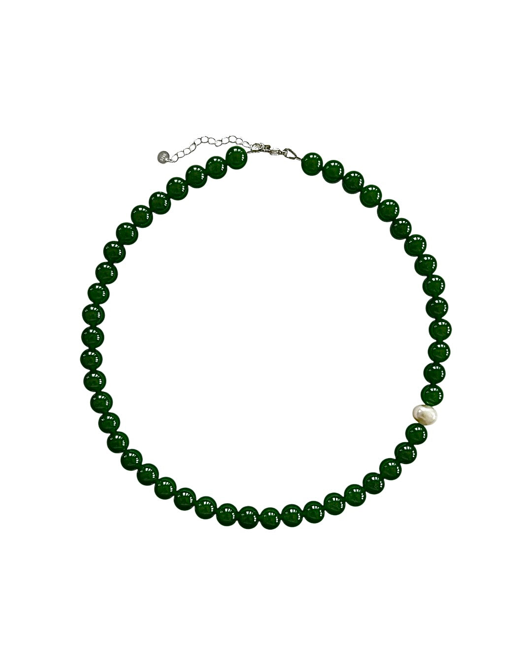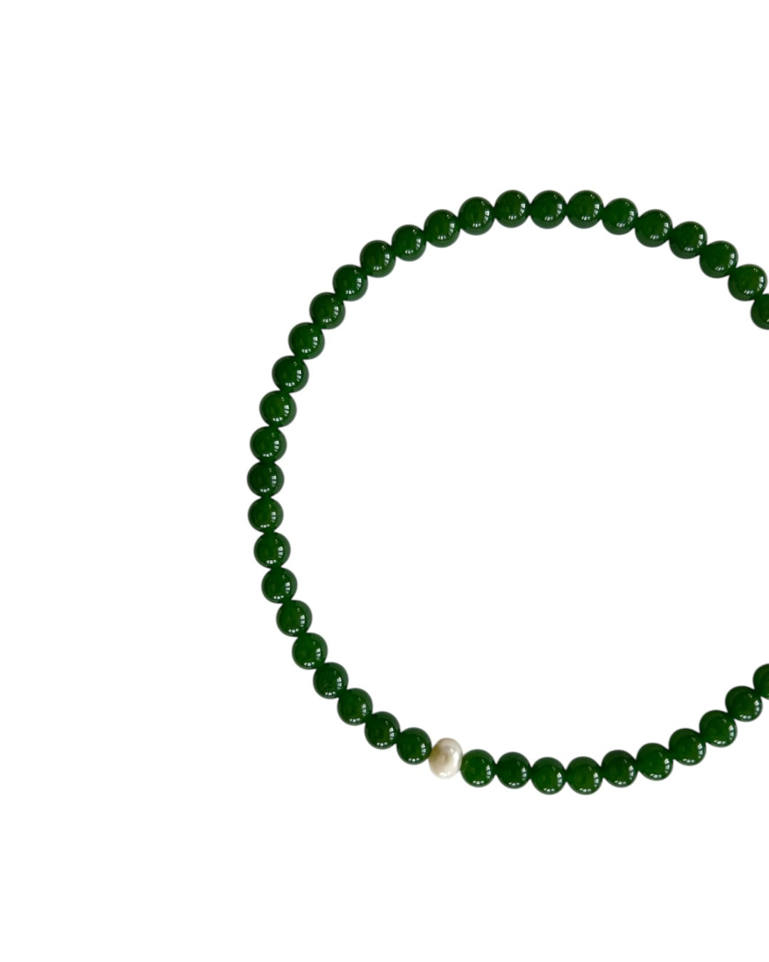 Green jade and a freshwater pearl. One of a kind. 16-18"